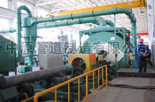 PA旗舰厅管道制造有限公司现有钢管内外液态环氧防腐生产线两条,产品规格为φ508mm~φ3620mm,执行SY/T0457、SY/T0447、AWWA C210等标准。涂敷采用无气喷涂或离心叶轮式涂敷机,生产线核心设备为:钢管内、外壁抛丸清理机,加热炉,自动涂敷车,烘干保温室等。生产设备自动化程度高,运行稳定,涂敷质量可靠。设备加工能力强、范围大,防腐产品主要用于输送石油、天然气、水、煤浆等介质。